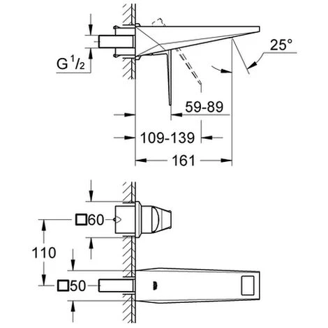 GROHE Allure Brilliant 2-Loch-Waschtischbatterie Wandmontage (ohne Unterputz-Einbaukörper) Fertigmontageset für 23 200 GROHE StarLight Oberfläche GROHE EcoJoy 5,0 l/min. Durchflusskonstanthalter Auslauf mit integriertem Mousseur Stichmaß 110 mm Auslad