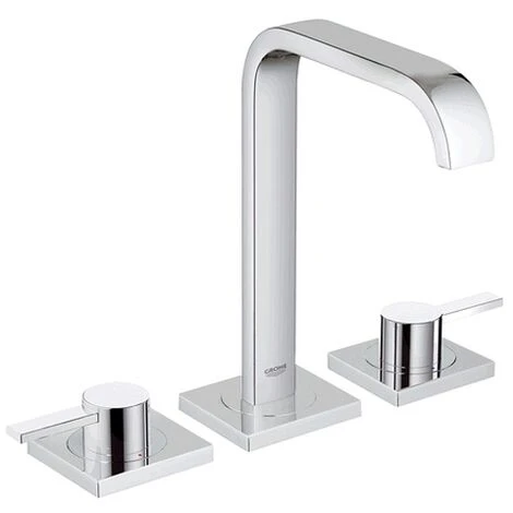 GROHE Allure 3-Loch-Waschtischbatterie, DN 15 Keramik-Oberteile 1/2”, 90 Grad GROHE StarLight Oberfläche Durchflussbegrenzer 8 l/min Auslauf mit Mousseur druckfeste, flexible Verbindungsschläuche zwischen Mittelkörper und Seitenventilen Zugstangen-Abl