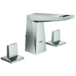 GROHE Allure Brilliant 3-Loch-Waschtischbatterie, DN 15 Keramik-Oberteile 1/2”, 90 Grad GROHE StarLight Oberfläche GROHE EcoJoy 5,0 l/min. Durchflusskonstanthalter flacher Auslauf mit integriertem Mousseur Zugstangen-Ablaufgarnitur 1 1/4” druckfeste, f