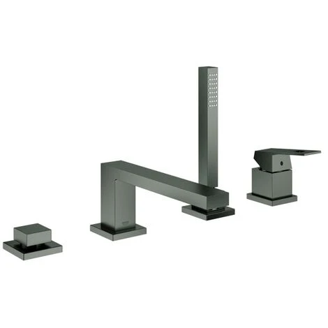 GROHE Eurocube 4-Loch Einhand-Wannenkombination GROHE SilkMove 46 mm Keramikkartusche GROHE StarLight Oberfläche bestehend aus: Auslauf-Aufnahme vormontiert Einhandmischer-Bedienelement Wanneneinlauf mit Mousseur Umstellung Wanne/Brause Handbrause Euphor