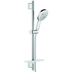GROHE Rainshower SmartActive 130 Brausestangenset 3 Strahlarten bestehend aus: Handbrause Rainshower SmartActive 130 (26 544) Brausestange 600 mm mit Wandhaltern aus Metall Brauseschlauch Silverflex 1.750 mm (28 388) GROHE EasyReach Ablage GROHE DreamSpra