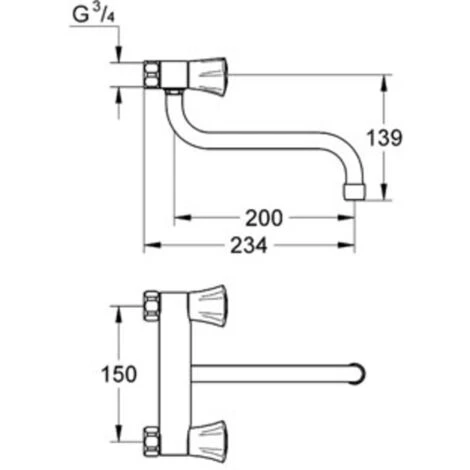 Grohe Costa-L wand keukenkraan met onderuitloop Chroom