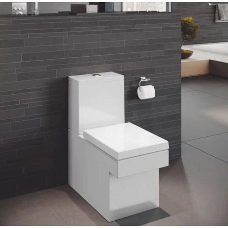 Die von den dynamischen, klaren Geometrien und dynamischen Linien des Kubismus inspirierte Grohe Cube Keramik Stand-WC-Kombination eignet sich ideal für alle minimalistischen Einrichtungen. Zudem machen ihre innovativen Funktionen sie zu einem pflegeleichten Produkt. Für umfassendere Sauberkeit und einfachere Reinigung verhindert die Grohe PureGuard Oberfläche das Bakterienwachstum und erzeugt gleichzeitig eine besonders glatte, schmutzabweisende Fläche. Die Randlos-Technologie des WC aus glänzender, alpinweißer Sanitärkeramik gibt Keimen zudem durch die einfache Reinigung und die garantiert optimierte Leistung keine Chance. Die Spülmenge beträgt 4,5/3 Liter und das voll umrandete WC wird mit einem Montageset geliefert.Mit Grohe Cube Keramiken, die eigens auf die Verwendung mit Grohe Skate Cosmopolitan Betätigungsplatten und Grohe Rapid SL Montagesets abgestimmt wurden, können Sie Ihre Designideen nun noch einfacher umsetzen. So ist Ihnen umfassende, harmonische Ästhetik mit ultimativer Leistung gewährleistet – und der Designprozess gestaltet sich einfach wie nie. Grohe Keramiken entstanden durch das Fachwissen, das Grohe als globaler Experte für Sanitärarmaturen und LIXIL, die führende Marke bei Oberflächentechnologien mit 100 Jahren technischer Exzellenz, bieten. Grohe Cube Keramik – klare Linien und dynamisches Design, in dem Luxus auf Minimalismus trifft.Ideal für die Kombination mit Grohe Cube Keramik Aufputz-Spülkästen (39489000 und 3949000) und dem Grohe Cube Keramik WC-Sitz (39488000).