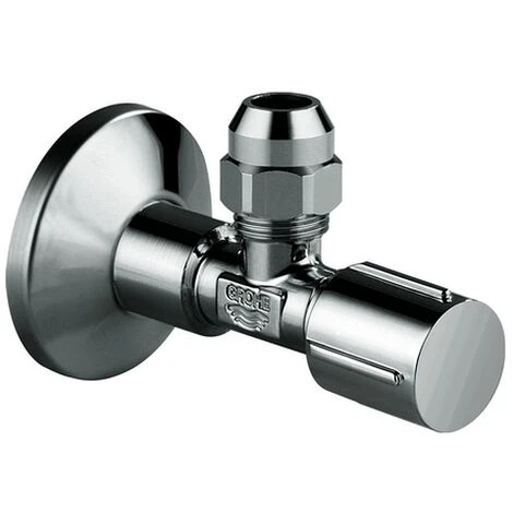 GROHE Eckventil, DN 15 angerauhtes Gewinde zum vereinfachten Eindichten Wandanschluss 1/2” Abgang 3/8” mit Längenausgleich mit Quetschverschraubung D: 10 mm wassergeschützte Spindelabsperrung, Messing, mit Fettkammer und doppelter O-Ring Abdichtung la
