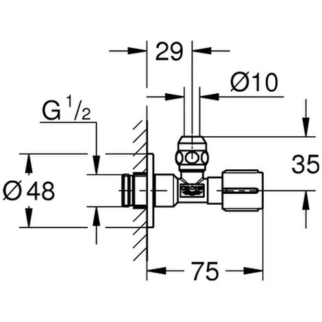 GROHE Eckventil, DN 15 selbstdichtendes Anschlussgewinde Wandanschluss 1/2” Abgang 3/8” mit Längenausgleich mit Quetschverschraubung D: 10 mm wassergeschützte Spindelabsperrung, Messing, mit Fettkammer und doppelter O-Ring Abdichtung langer Schubschaf