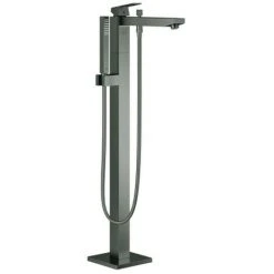 GROHE Eurocube Einhand-Wannenbatterie DN 15, Bodenmontage Fertigmontageset 45 984 ohne Rohbau-Set GROHE SilkMove 35 mm Keramikkartusche mit Temperaturbegrenzer GROHE StarLight Oberfläche automatische Umstellung: Wanne/Brause Auslauf mit Mousseur Handbrau