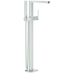 GROHE Plus Einhand-Wannenbatterie DN 15, Bodenmontage Fertigmontageset 45 984 ohne Rohbau-Set GROHE SilkMove 35 mm Keramikkartusche mit Temperaturbegrenzer GROHE StarLight Oberfläche automatische Umstellung: Wanne/Brause Auslauf mit Laminarstrahlregler A