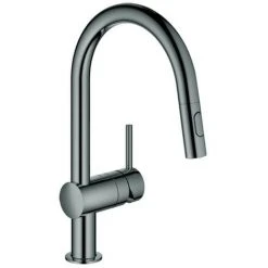 GROHE Minta Einhand-Spültischbatterie, DN 15 C-Auslauf Einlochmontage GROHE StarLight Oberfläche GROHE SilkMove 46 mm Keramikkartusche GROHE EasyDock herausziehbare Dual Spülbrause Umstellung: Laminarstrahl/SpeedClean Brausestrahl variabel einstellbare