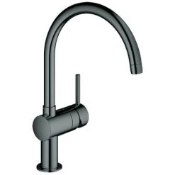 GROHE Minta Einhand-Spültischbatterie, DN 15 C-Auslauf Einlochmontage GROHE StarLight Oberfläche GROHE SilkMove 46 mm Keramikkartusche variabel einstellbare Mengenbegrenzung schwenkbarer Rohrauslauf Schwenkbereich wählbar: 0 Grad / 150 Grad / 360 Grad