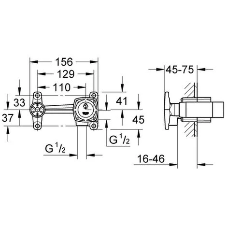 GROHE Grandera Einhand Unterputz-Universal- Einbaukörper, DN 15 für 2-Loch-Waschtischbatterien Wandeinbau ohne Fertigmontageteile GROHE SilkMove 35 mm Keramikkartusche variabel einstellbare Mengenbegrenzung Einbautiefe 45 bis 75 mm Einbauschablone