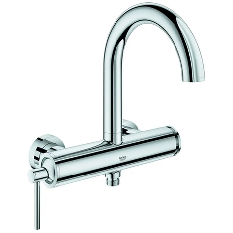GROHE Atrio Einhand-Wannenbatterie, DN 15 Wandmontage GROHE SilkMove 35 mm Keramikkartusche GROHE StarLight Oberfläche automatische Umstellung: Wanne/Brause Auslauf mit Mousseur Brauseabgang unten 1/2” mit integriertem Rückflussverhinderer verdeckte S-