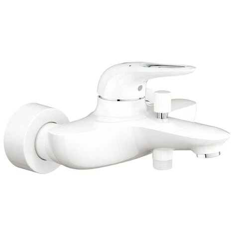 GROHE Eurostyle Einhand-Wannenbatterie, DN 15 Wandmontage offener Metall-Hebelgriff GROHE SilkMove 35 mm Keramikkartusche mit Temperaturbegrenzer GROHE StarLight Oberfläche variabel einstellbare Mengenbegrenzung automatische Umstellung: Wanne/Brause Ausl