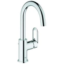 GROHE BauLoop Einhand-Waschtischbatterie, DN 15 L-Size Einlochmontage GROHE Longlife 28 mm Keramikkartusche GROHE StarLight Oberfläche GROHE EcoJoy 5,7 l/min Mousseur Schnell-Montage-System schwenkbarer Rohrauslauf Zugstangen-Ablaufgarnitur aus Kunststof
