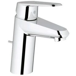 GROHE Eurodisc Cosmopolitan Einhand-Waschtischbatterie, DN 15 S-Size Einlochmontage GROHE SilkMove ES 35 mm Keramikkartusche Energie-Spar-Funktion Mittelstellung kalt variabel einstellbare Mengenbegrenzung mit Temperaturbegrenzer GROHE StarLight Oberfläc