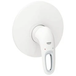 GROHE Eurostyle Einhand-Brausebatterie Fertigmontageset für 35 501 (ohne Unterputz-Einbaukörper) GROHE StarLight Oberfläche GROHE QuickFix verdeckte Befestigung offener Metall-Hebelgriff Rosetten- und Schaftabdichtung Wandrosette aus Metall moon whi