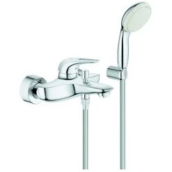 GROHE Eurostyle Einhand-Wannenbatterie, DN 15 Wandmontage offener Metall-Hebelgriff GROHE SilkMove 35 mm Keramikkartusche mit Temperaturbegrenzer GROHE StarLight Oberfläche variabel einstellbare Mengenbegrenzung automatische Umstellung: Wanne/Brause Ausl