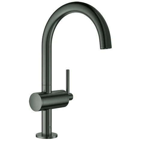 GROHE Atrio Einhand-Waschtischbatterie, DN 15 L-Size Einlochmontage GROHE SilkMove 28 mm Keramikkartusche GROHE StarLight Oberfläche GROHE EcoJoy 5,7 l/min Laminar Mousseur schwenkbarer Bogenauslauf mit Mousseur mit Anschlagbegrenzung Push-open Ablaufgar
