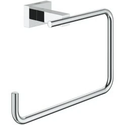 Der GROHE Essentials Cube Handtuchring ist 188 mm breit. Er eignet sich perfekt für ein minimalistisches Badezimmerkonzept. Mit seiner glänzenden, langlebigen GROHE StarLight Chromoberfläche sieht er auch nach Jahren makellos aus.