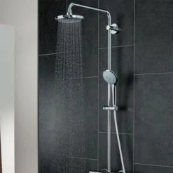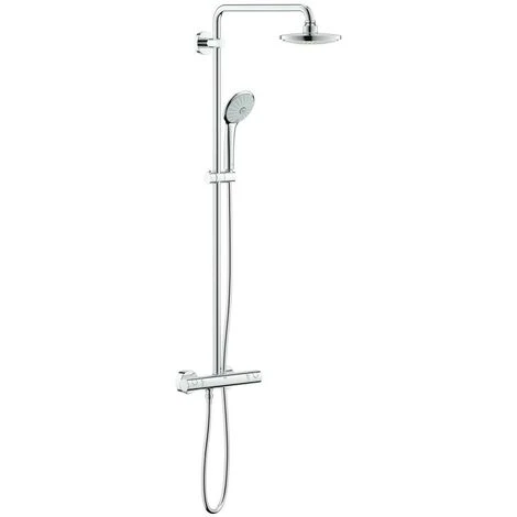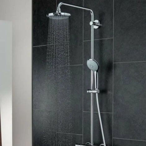 Betreten Sie Ihre mit dem GROHE Euphoria 180 Duschsystem mit Thermostat ausgestattete Dusche und erleben Sie totale Entspannung oder auch totale Belebung. Die vielseitigen Funktionen dieser Dusche lassen Ihnen die Wahl. Die Euphoria Cosmopolitan 180 mm Kopfbrause lässt Sie unter dem Rain Strahl entspannen. GROHE DreamSpray stellt einen gleichmäßigen Wasserfluss aus jeder Düse sicher. Der Duscharm der Kopfbrause ist um 180° schwenkbar – für mehr Flexibilität. Die Euphoria 110 mm-Massage-Handbrause verfügt über drei verschiedene Strahlbilder passend für jede Stimmung: einen sanften Rain Strahl, den umweltfreundlichen SmartRain und einen belebenden Massage Strahl.