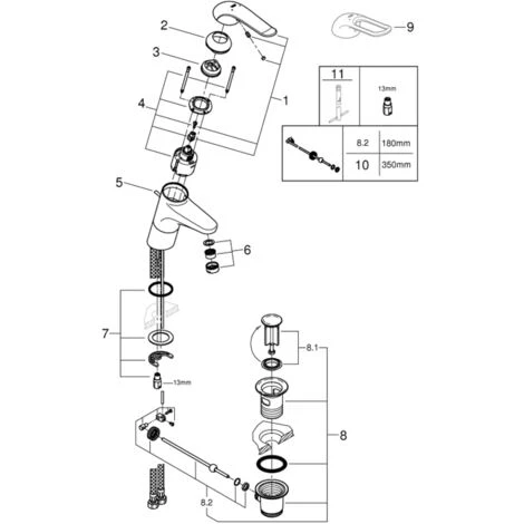 GROHE Euroeco Special Einhand-Waschtischbatterie, DN 15 Einlochmontage Zugstangen-Ablaufgarnitur 1 1/4” GROHE StarLight Oberfläche GROHE SilkMove 46 mm Keramikkartusche variabel einstellbare Mengenbegrenzung mit Temperaturbegrenzer einstellbare Mindestmenge 2,5 l/min Laminarstrahlregler 9 l/min Bedienungshebel aus Metall Hebellänge 120 mm Schnell-Montage-System flexible Anschlussschläuche