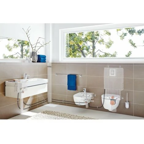 Mit dem raffinierten Schnellmontage-System von GROHE gelingt die Installation der Armatur im Handumdrehen. Das System kommt mit nur wenigen Teilen aus und wird in leicht verständlichen Schritten erklärt. Flexible Anschlussschläuche machen die Montage zusätzlich einfacher.
