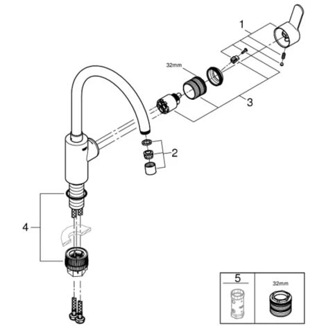 GROHE Zero getrennte innenliegende Wasserwege – kein Kontakt mit Blei oder Nickel innerhalb der Armatur