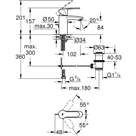 - Aufbauhöhe Unterkante Hahnauslass: 84