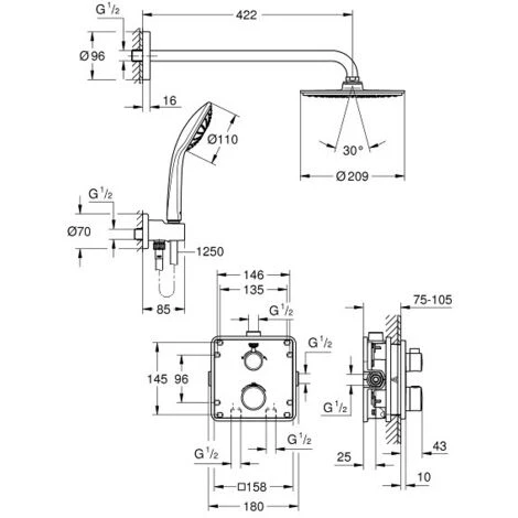 Hauptmerkmale Grohtherm Duschsystem Unterputz Mit Rainshower Cosmopolitan 210 Chrom (34734000) :