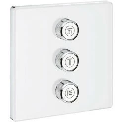 Die subtil stilvolle Grohtherm SmartControl Rosette ermöglicht die perfekte Bad- oder Duscherfahrung: Schalten Sie einfach bequem auf Knopfdruck zwischen vier Ausläufen um – Badewanne, Brause oder Dusche. In Kombination mit dem Grohtherm SmartControl-Thermostat mit einem Ventil (29153LS0) haben Sie mit diesem Reglerset in stilvollem Moon White die freie Wahl: Sie können bis zur vier Ausläufe regeln und erhalten hierdurch eine größere Auswahl und mehr Kombinationsmöglichkeiten im Hinblick auf die Optionen Strahl und Wasserquelle, um so zu Ihrer idealen Dusch- oder Badkonfiguration zu gelangen. Mithilfe der innovativen SmartControl Technologie können Sie Ihre gewünschte Strahlquelle auswählen und die Wassermenge durch Drücken und Drehen eines Knopfes regeln. Dank der Grohe EasyLogic Kennzeichnungen und der Struktur der Knöpfe mit auswechselbaren Symbolen sind diese leicht und intuitiv zu bedienen. Dank des Grohe QuickFix Systems ist die Montage schnell und direkt möglich. Das schlanke Profil erleichtert das Reinigen und die schicke, langlebige Grohe StarLight Moon White Oberfläche sieht noch nach Jahren makellos aus. Durch das schlanke, eckige Design, welches perfekt zu dieser minimalistischen, optimierten Optik passt, wird das Badezimmer-Design vollkommen.Bitte beachten Sie, dass dieses Produkt zusammen mit der Grohe Rapido SmartBox (35600000) sowie dem Grohtherm SmartControl Thermostat für die Unterputzmontage mit einem Ventil (29153LS0) montiert werden muss.