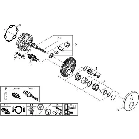 - Grohe TurboStat Kompaktkartusche mit Dehnstoff-Thermoelement