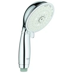 GROHE Tempesta Rustic 100 Handbrause 4 Strahlarten GROHE Rain O2, Rain, Massage, Jet GROHE EcoJoy 9,5 l/min Durchflusskonstanthalter GROHE DreamSpray perfektes Strahlbild GROHE StarLight Oberfläche SpeedClean Antikalk-System innenliegende separate Wasser
