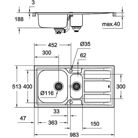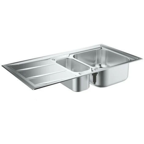 Entscheiden Sie sich für einen Spültisch, der Ihnen über Jahre hinweg Freude bereiten wird und dabei nicht nur gut aussieht, sondern auch praktische Funktionen bietet. Der Grohe K400 Edelstahl-Spültisch mit Abtropfbecken ist dank der zwei vorgefertigten Gewindebohrungen beidseitig verwendbar und somit eine vielseitige, anwenderfreundliche Spüle. Dank der Halterung mit abgeflachtem Rand lässt sich die Garnitur nahtlos mit Ihren Armaturen kombinieren. Der Spültisch verfügt über jede Menge Raum und eine Spüle mit einer Tiefe von 18,8 cm, sodass auch große Pfannen bequem Platz darin finden. Geliefert wird der Spültisch mit einigen praktischen Funktionen, die Ihr Küchenerlebnis revolutionieren: Für eine leisere Umgebung dämpft die Grohe Whisper Isolierung auf der Unterseite des Spültischs Geräusche und der automatische Schmutzwasserablauf mit Exzenterbedienung vermeidet, dass Sie zum Ablassen des Schmutzwassers in das benutze Wasser greifen müssen. Der Spültisch ist aus extrem langlebigem Grohe StarLight AISI 316 Edelstahl gefertigt, der manchmal auch „Marine-Stahl” genannt wird. Dieses qualitativ extrem hochwertige Material ist beständig gegen Rost, Korrosion, Säuren und Chlor, wodurch es sich ideal für den Einsatz in salzigen Regionen eignet. Die gebürstete Oberfläche reduziert die Porosität und gestaltet das Produkt somit pflegeleichter, sodass es sein gutes Aussehen länger beibehält. Dank des Grohe QuickFix Systems findet die Montage im Handumdrehen und ganz ohne Schwierigkeiten statt – Sie benötigen kein weiteres Zubehör.