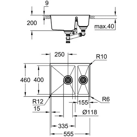 - Grohe K500 Kompositspüle, 555x460mm, drehbar, granit schwarz