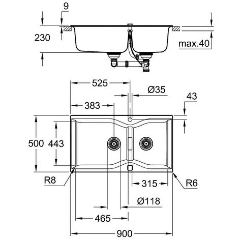 - Grohe K700 Kompositspüle, 900x500mm, granit schwarz