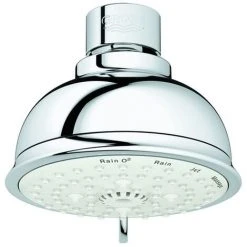 GROHE Tempesta Rustic 100 Kopfbrause 4 Strahlarten GROHE Rain O2, Rain, Massage, Jet Kugelgelenk mit Schwenkwinkel +/- 15 Grad Anschlussgewinde 1/2” GROHE EcoJoy 9,5 l/min Durchflusskonstanthalter GROHE DreamSpray perfektes Strahlbild GROHE StarLight Obe