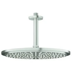 GROHE Rainshower Cosmopolitan 310 Kopfbrauseset Deckenauslass 142 mm bestehend aus: Rainshower Cosmopolitan 310 Metall-Kopfbrause (27 478) 1 Strahlart Brausestrahl Rain Brausearm Rainshower Deckenauslass 142 mm (28 724) GROHE EcoJoy 9,5 l/min Durchflussko