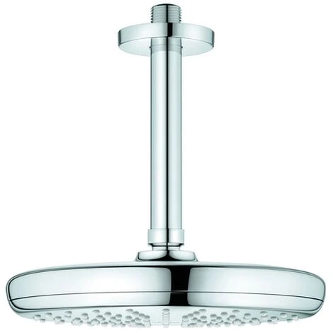 GROHE Tempesta 210 Kopfbrauseset Deckenauslass 142 mm bestehend aus: Tempesta 210 Kopfbrause (26 408) Brausestrahl Rain Brausearm Rainshower Deckenauslass 142 mm (28 724) GROHE DreamSpray perfektes Strahlbild GROHE StarLight Oberfläche SpeedClean Antikal