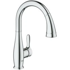 Mit ihrem soliden und organischen Design ist die Parkfield genau richtig für praktisch veranlagte Köche mit einer Vorliebe für die Landhausküche. Sie hat einen handlichenBedienhebel für die Steuerung des Wasserflusses und eine solide, herausziehbare Spülbrause, an der Sie einfach zwischen zwei Strahlarten wählen können. Die GROHESpeedClean Düsen und der höhere Auslauf sorgen für zusätzlichen Komfort. Damit ist Parkfield eine praktische und leistungsstarke Lösung für alle Küchen.