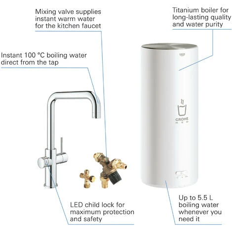 Grohe Red Kochendwasserhahn mit U-Auslauf und Kombikessel Chrom