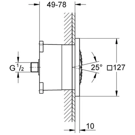 GROHE Rainshower F-Series 5” Seitenbrause Normalstrahl inklusive Einbaukörper 127 x 127 mm Strahlbildner mit Kugelgelenk (+/- 12,5 Grad schwenkbar) Anschlussgewinde 1/2” GROHE DreamSpray perfektes Strahlbild GROHE StarLight Oberfläche GROHE FlowBalanc