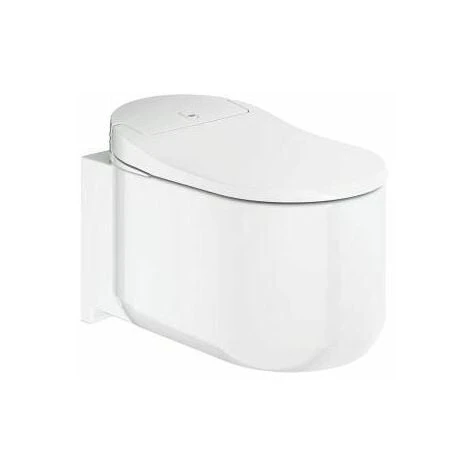 Bestehend aus: WC • Farbe: weiß Alpin • Beschichtung: HyperClean & AquaCeramic • Montage: wandhängend • Spülrand: spülrandlos/Triple Vortex • Spülwasserbedarf: 3-5 l WC-Sitz • Material: Duroplast antibakteriell • Farbe: weiß Alpin • Ladydusche: ja • Gesäßdusche: ja • Sitzheizung: nein • Leistungsaufnahme: 850 W • Geruchsabsaugung: ja • Infrarot Benutzererkennung: ja • Bedieneinheit für Grundfunktionen am Sitz: ja • Selbstreinigende Gesäß- und Lady-Dusche: ja • Verdeckte Anschlüsse: ja • Anschlussspannung: 220-240V AC, 50-60 Hz • Maße gesamt (B x H x T): 375 x 459 x 600 mm • Gesamtgewicht: 40 kg (WC + WC Sitz) • Beleuchtung für die nächtliche Orientierung im Bad: ja, LED-Beleuchtung, sensorgesteuert • Einstellbare Stärke des Duschstrahls: ja, 6 Stufen • Einstellbare Wassertemperatur: ja, 6 Stufen, 32°C-40°C • Warmluftfön: ja, 5 Stufen, 40°C-55°C • Einstellbare Duschdüsenposition: ja, 5 Stufen • Separate Wasserführung für Lady-Dusche: ja • Individuell einstellbare Benutzerprofile: ja, via App • Entkalkungsfunktion (Öffnung hinten am WC-Sitz) • Fernbedienung: ja • App: ja • QuickRelease-Mechanismus: nein Vorteile: • Automatisches Öffnen und Schließen von Deckel und Sitz • 2 verstellbare Duscharme für Gesäß- und Lady-Dusche • Oszillierender Duschstrahl • Pulsierende Massagedusche Lieferumfang: • WC • Dusch-WC-Sitz • Fernbedienung mit Wandhalterung • Smartphone APP für iOS und Android (Download) • Wasseranschlussset für Unterputz-Spülkasten • Aktivkohlefilter • Kabelkupplung für Stromanschluss • Schallschutzmatte und Montageplatte Eine Enthärtungsanlage wird dringend Empfohlen (7-9° d.H)