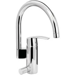 Moderner Stil: Der Einhebelmischer Start für den Spültisch kommt in einem ausdrucksstarken Design daher: Der Grundkörper im schicken Chrom, der geschwungene Auslauf sowie die abgerundeten Kanten verleihen ihm einen stylischen Look. Aus 21,3 cm Höhe fließt das Wasser ins Becken.