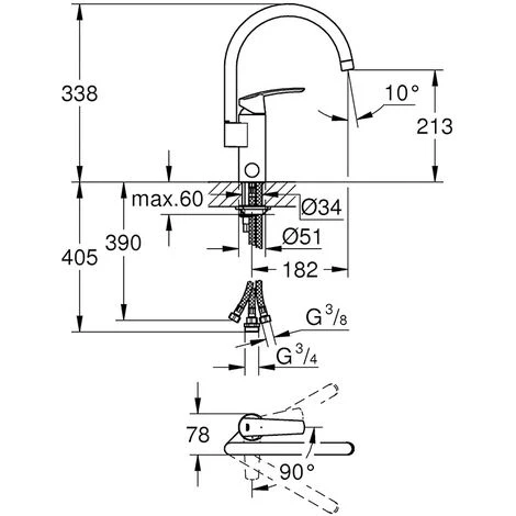 | Abmessungen: | 33,8 x 18,2 cm (H x T), Auslaufhöhe: 21,3 cm |