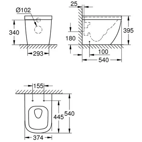 GROHE Euro Keramik Stand-Tiefspül-WC mit PureGuard Oberfläche Abgang waagerecht back to wall Triple Vortex Spülung spülrandlos Spülmenge 3/5 l inkl. Befestigungsset aus Sanitärkeramik ohne sichtbare Befestigung PureGuard Hygieneoberfläche besteh