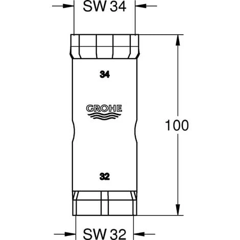 Steckschlüssel 34 mm für De-/Montage Zentralverschraubung und GROHE TurboStat Thermostat-Kompaktkartusche 32 mm für De-/Montage der 35 mm Keramik-Kartusche
