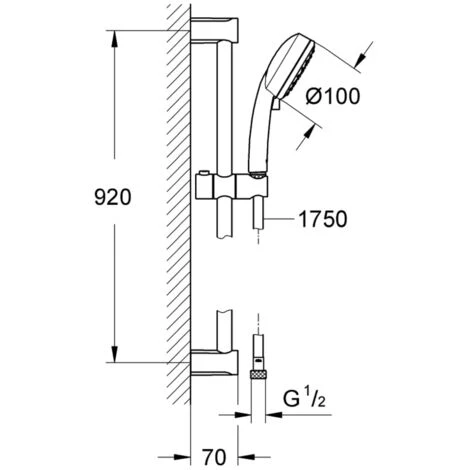 GROHE Tempesta Cosmopolitan 100 Brausestangenset 2 Strahlarten bestehend aus: Handbrause Tempesta 100 C (27 571) Brausestange Tempesta C 900 mm (27 522) Relexaflex-Brauseschlauch 1.750 mm (28 154) GROHE DreamSpray Perfektes Strahlbild GROHE StarLight Oberfläche SpeedClean Antikalk-System