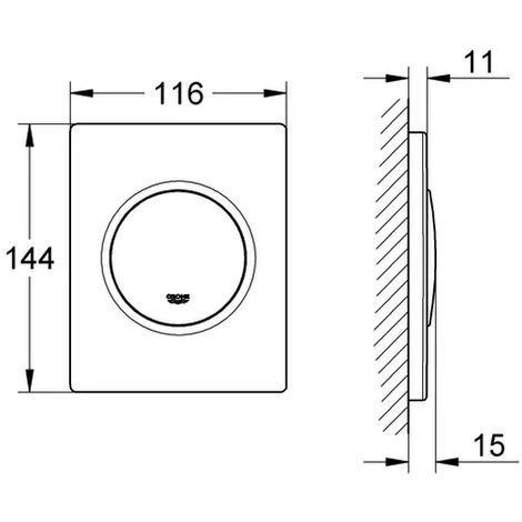 GROHE Nova Cosmopolitan Betätigungsplatte manuelle Auslösung für Urinal Fertigmontageset 116 x 144 mm mechanische Funktionskartusche Fließdruck min. 0,5 bar Betriebsdruck max. 6 bar 1,0 – 6,0 l einstellbar Armaturengruppe II GROHE StarLight Oberfläch