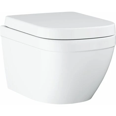 Das GROHE Euro Keramik Set Wand-Tiefspül-WC vereint Randlos-Technologie und schlichte Linienführung und eignet sich auch dank seiner nicht sichtbaren Befestigung für praktisch jedes Bad. Die Randlos-Technologie verbessert die Spülung, erleichtert die Reinigung und verhindert Bakterien. Sie ist um die Triple Vortex Spülung erweitert, die mit kräftigem Wasserstrudel dennoch leise spült. Der WC-Sitz mit Deckel besteht aus Duroplast und verfügt über Soft Close für mehr Sicherheit und größere Bequemlichkeit sowie eine Quick Release Funktion, die werkzeugloses Abnehmen ermöglicht. Das GROHE Stand-Tiefspül-WC Euro Keramik verfügt über einen waagerechten Abgang und liefert eine Spülmenge von 3/5 Litern. GROHE Keramiken – zeitloses Design und Vielseitigkeit für jedes Badezimmer, praktische Funktionen und modernes Profil für Ihren Alltag.Farbe: alpinweissMaterial: SanitärkeramikMaße: 54 x 37,4 x 44,5 cmAbgang: waagerechtMontage: wandhängendSpülrand: spülrandlosForm: D-förmigInnenform: