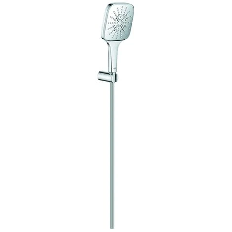 GROHE Rainshower SmartActive 130 Cube Wandhalterset 3 Strahlarten bestehend aus: Handbrause Rainshower SmartActive 130 Cube (26 582) Wandbrausehalter verstellbar (27 055) Brauseschlauch Silverflex 1.500 mm (28 364) GROHE EcoJoy 9,5 l/min Durchflusskonstan