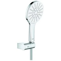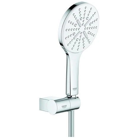 GROHE Rainshower SmartActive 130 Wandhalterset 3 Strahlarten bestehend aus: Handbrause Rainshower SmartActive 130 (26 574) Handbrausehalter, verstellbar (27 055) Brauseschlauch Silverflex 1.500 mm (28 364) GROHE EcoJoy 9,5 l/min Durchflusskonstanthalter G